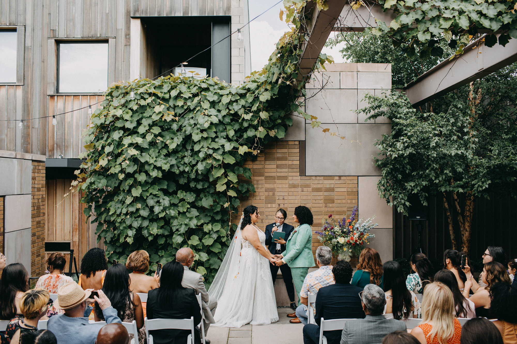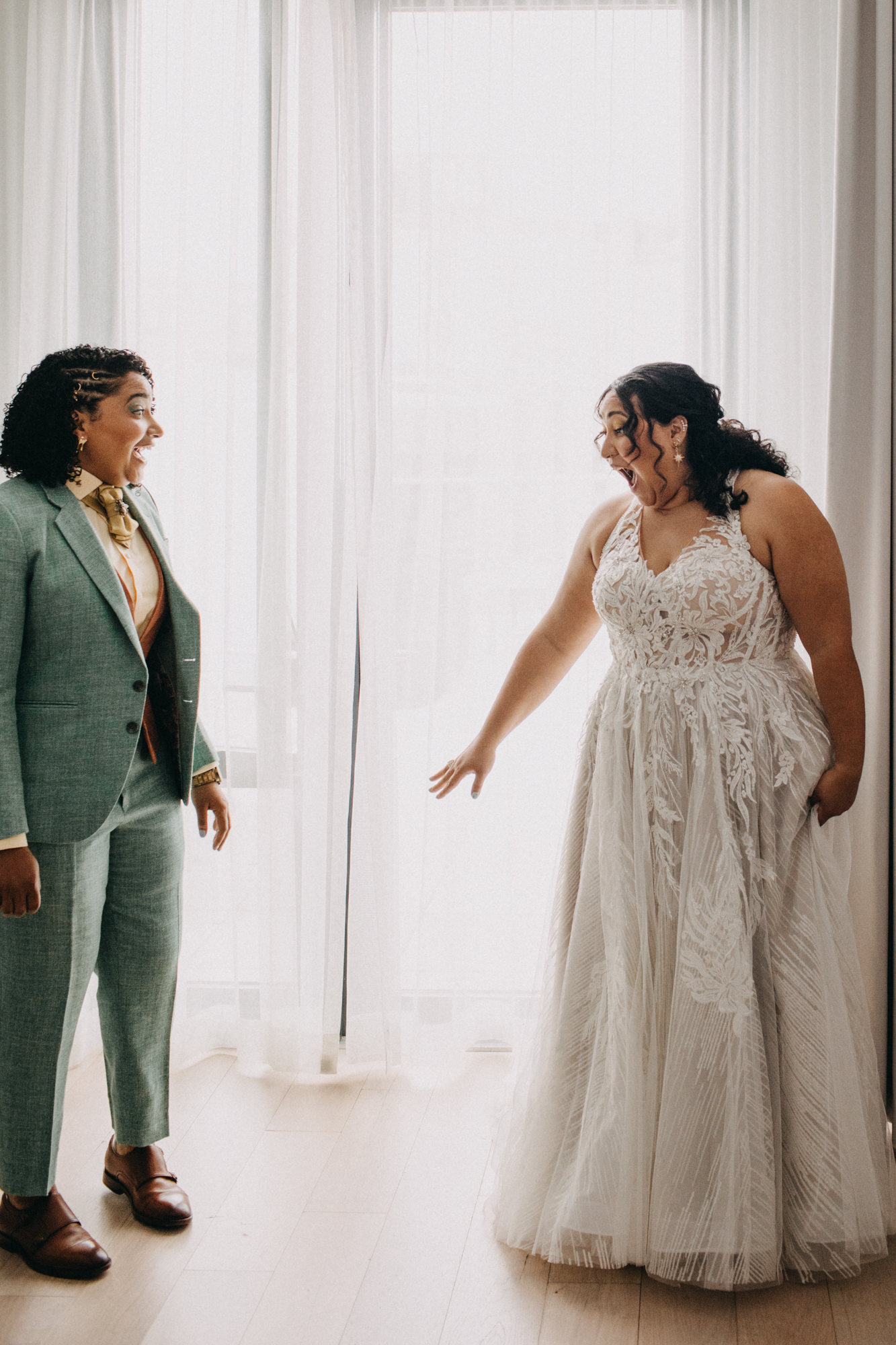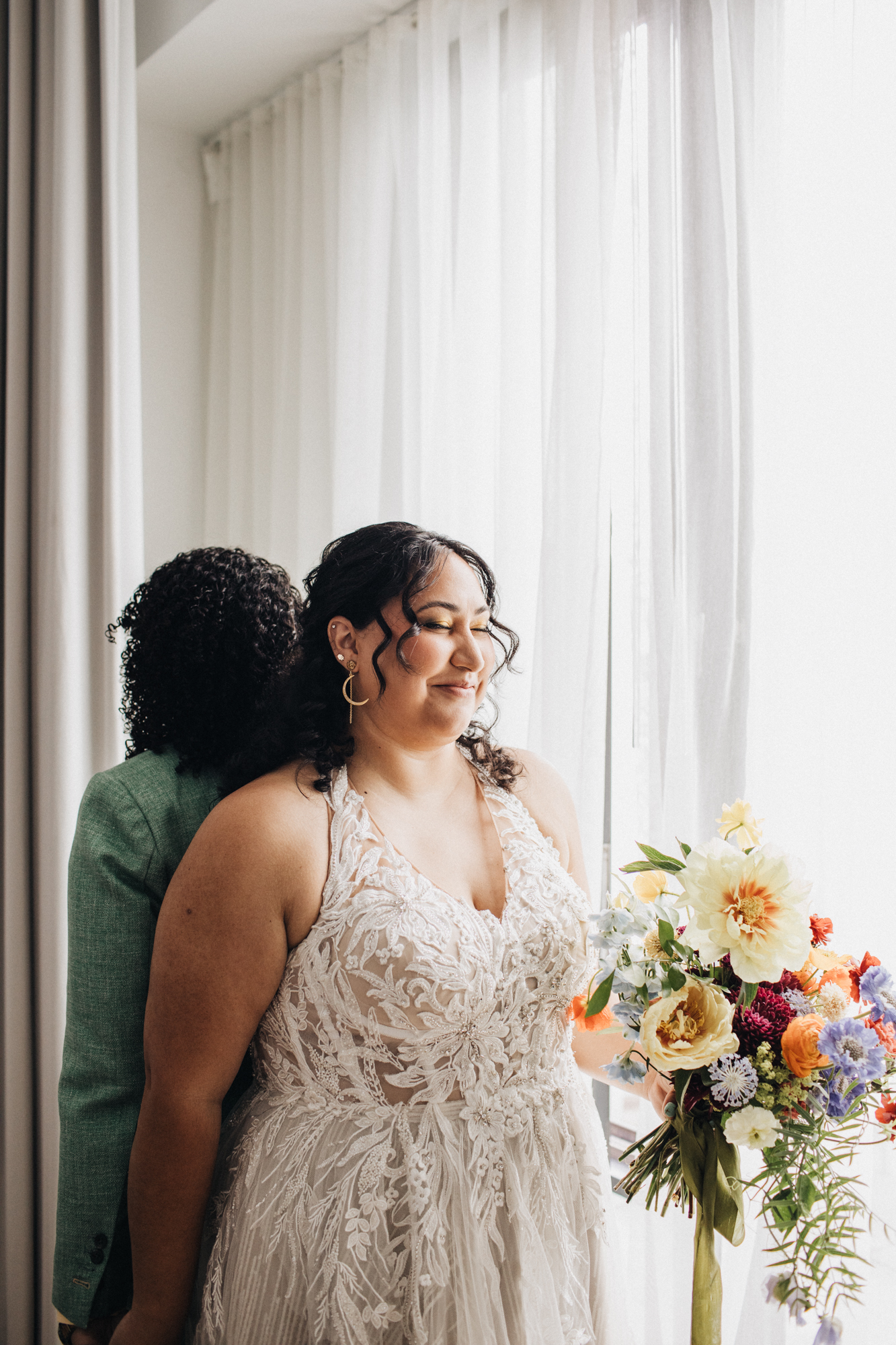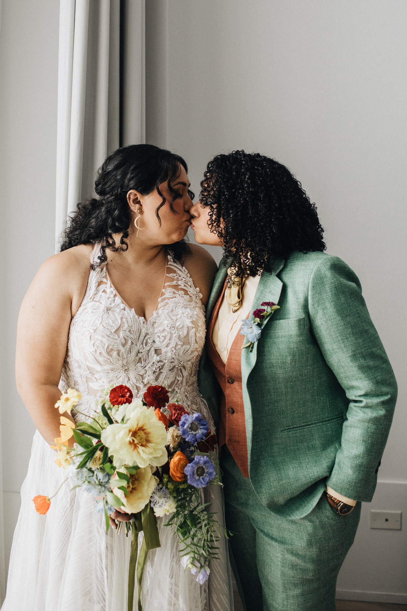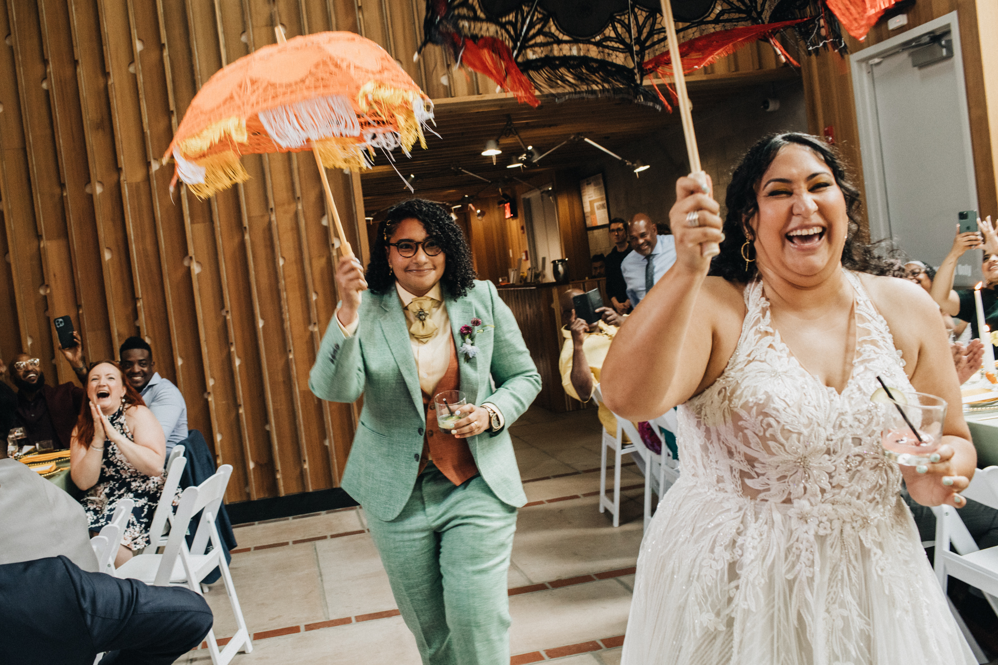 The best word to describe S + A’s is “colorful!” Wow! Signal + Aubree were wed at Carroll Hall in Brooklyn, New York in June. There was an overflow of laughter, love, and music. There was also a fabulous Drag Queen who performed during their reception! What. A. Party!